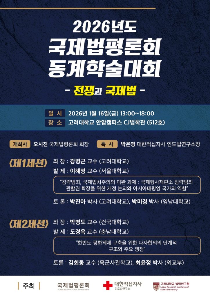 2026년도 국제법평론회 동계학술대회 개최 안내