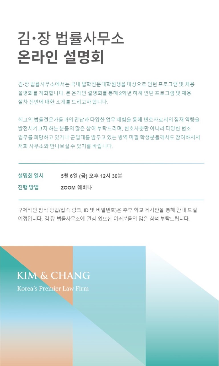 | [김.장 법률사무소] 인턴 및 채용 설명회 안내 | |