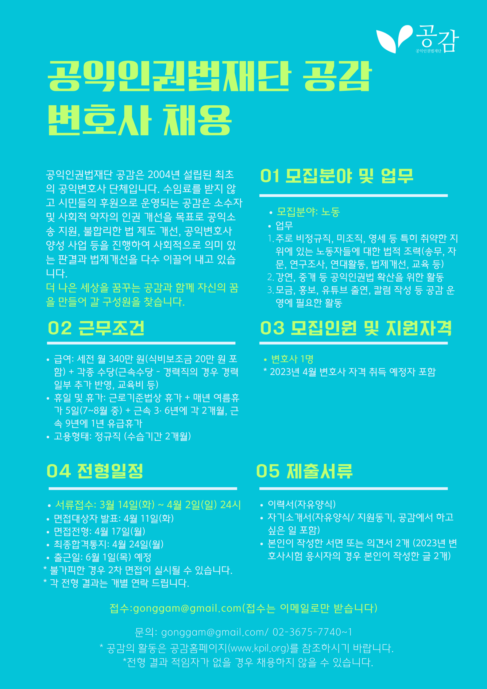 알림마당 홈알림마당외부기관공고 [공익인권법재단 공감] 채용공고 [공익인권법재단 공감] 채용공고 법학전문대학원2023-03-15 페이스북 트위터 구글플러스 이메일 프린트 Download (PDF, 63KB) 이전알림마당다음