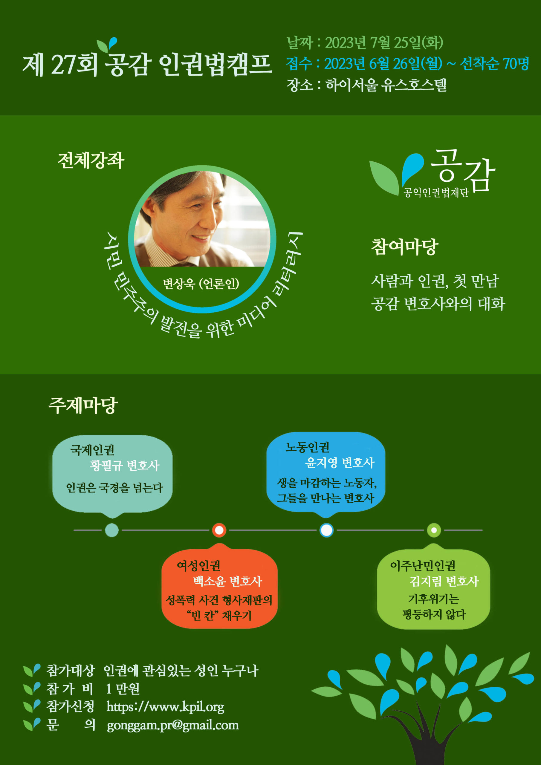 자료실(학위과정) 홈입학안내자료실(학위과정) [공익인권법재단 공감] 인권법캠프 안내 [공익인권법재단 공감] 인권법캠프 안내 법학전문대학원2023-06-02 페이스북 트위터 구글플러스 이메일 프린트 [모집] 제 27회 공감 인권법 캠프 참가자 접수 | 공익인권법재단 공감 (kpil.org) 이전자료실(학위과정)다음