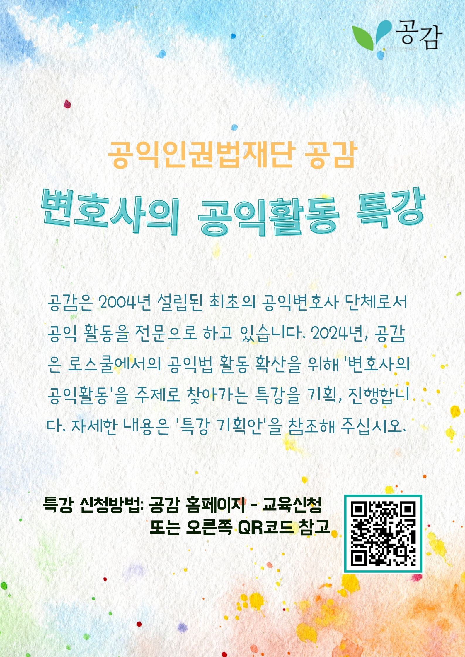 외부기관공고 홈알림마당외부기관공고 2024 변호사의 공익활동 특강 2024 변호사의 공익활동 특강 법학전문대학원2024-03-14 페이스북 트위터 구글플러스 이메일 프린트 이전외부기관공고다음
