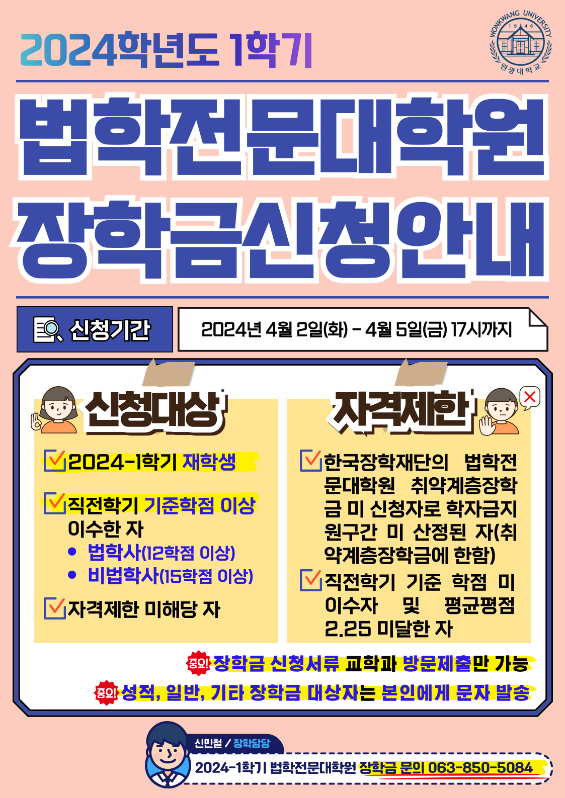2024-1학기 법학전문대학원 장학금 선발기준 및 제출서류 안내 | |