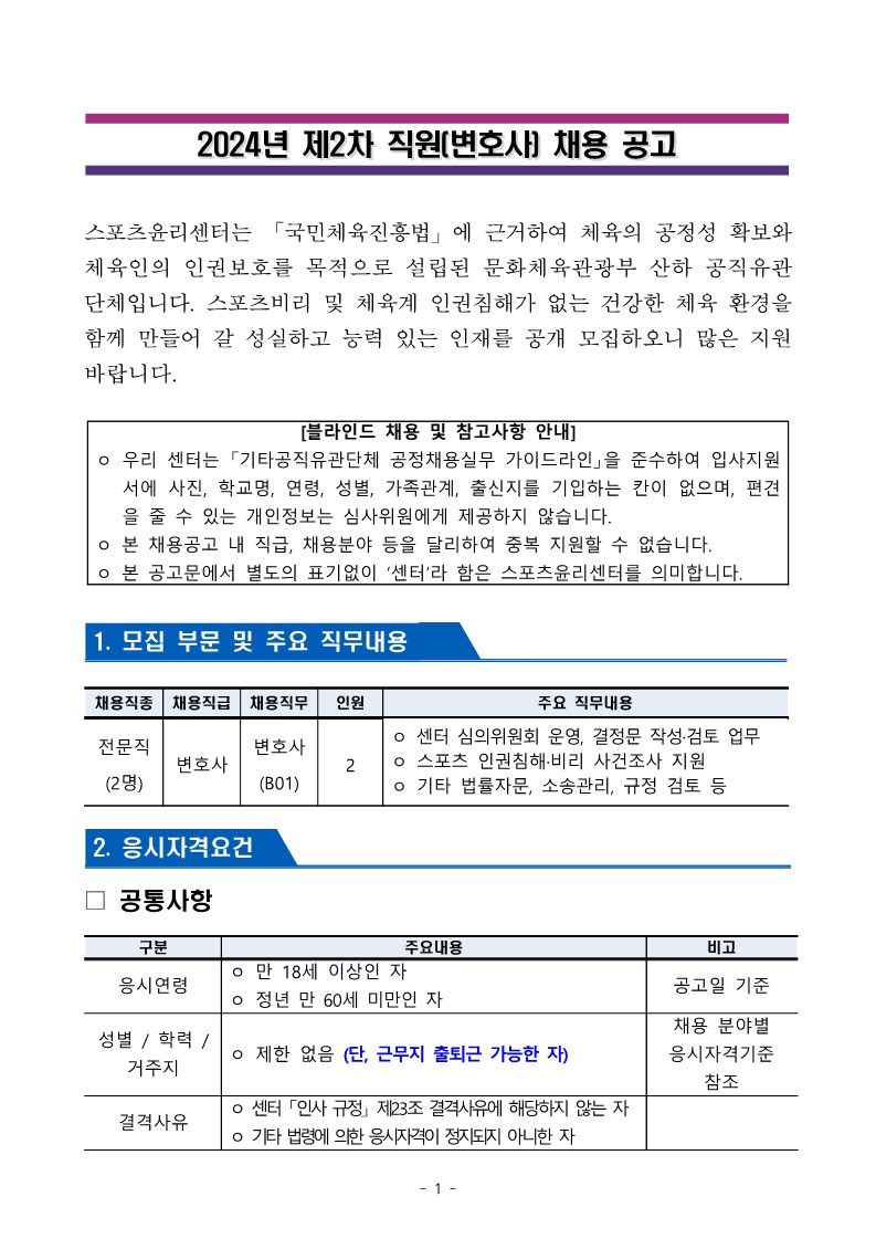외부기관공고 홈알림마당외부기관공고 2024년 제2차 직원(변호사) 채용 공고(스포츠윤리센터) 2024년 제2차 직원(변호사) 채용 공고(스포츠윤리센터) 법학전문대학원2024-05-17 페이스북 트위터 구글플러스 이메일 프린트 이전외부기관공고다음