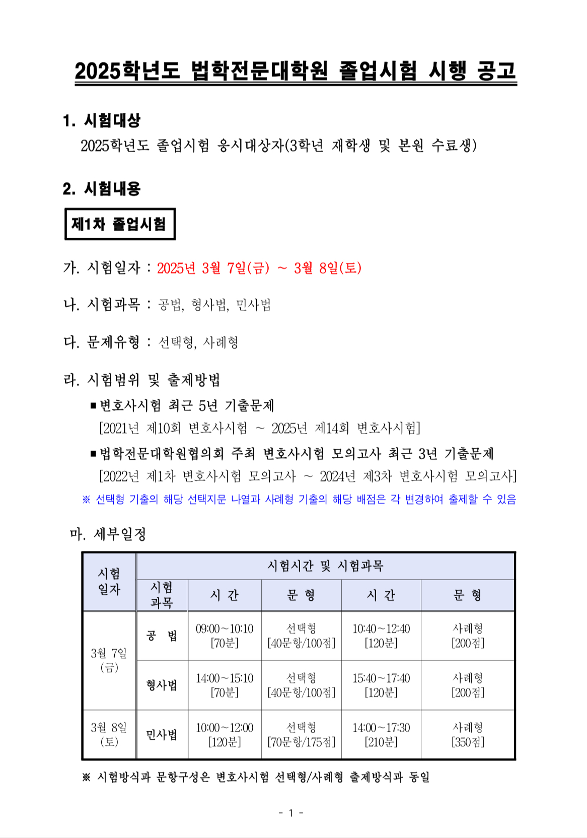 학사공지사항 홈알림마당학사공지사항 2025학년도 졸업시험 시행계획 공고 2025학년도 졸업시험 시행계획 공고 법학전문대학원2025-01-20 페이스북 트위터 구글플러스 이메일 프린트 2025학년도 졸업시험 시행계획 안내입니다. 이전학사공지사항다음