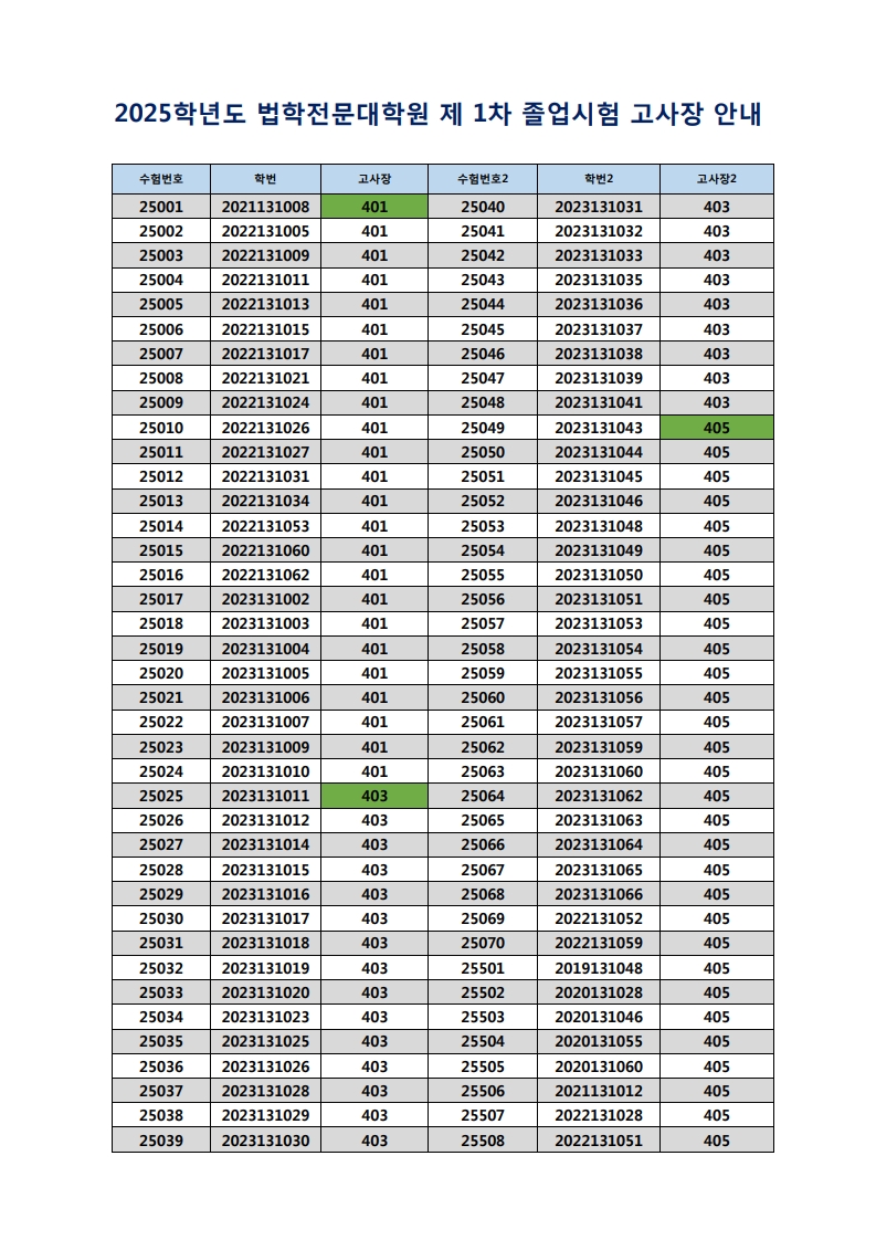 학사공지사항 홈알림마당학사공지사항 2025학년도 제1차 졸업시험 고사장 안내 2025학년도 제1차 졸업시험 고사장 안내 법학전문대학원2025-03-06 페이스북 트위터 구글플러스 이메일 프린트 ❏ 시험일자 및 장소 ❍ 시험일자 : 2025. 3. 7.(금) ~ 2025. 3. 8.(토) ❍ 시험장소 : 원광대학교 법학전문대학원 이전학사공지사항다음