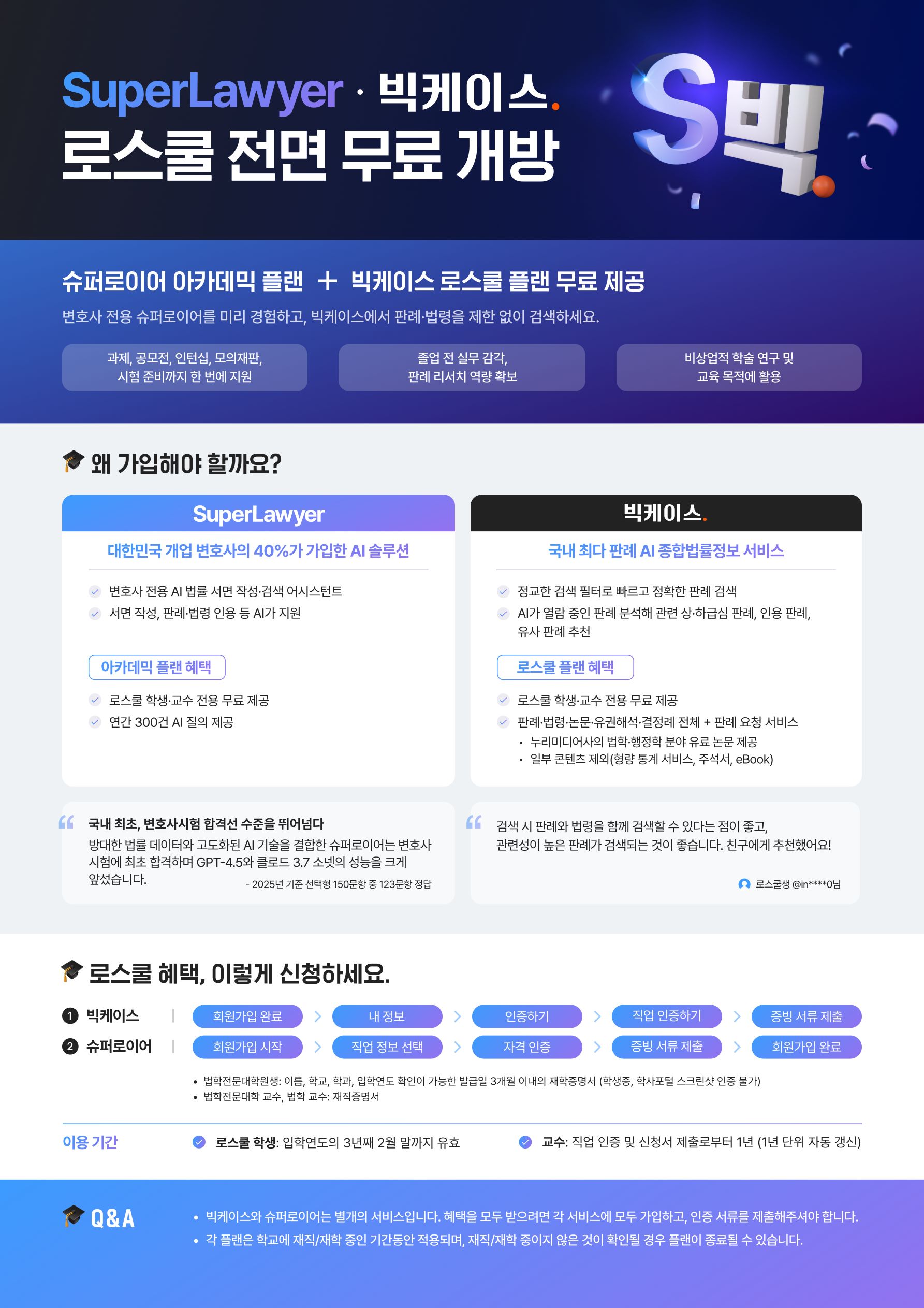| 슈퍼로이어·빅케이스 로스쿨 전면 무료 제공 | |