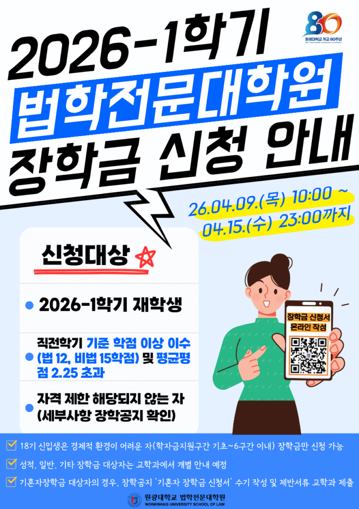 | 2026학년도 1학기 법학전문대학원 장학금 신청 안내 | |