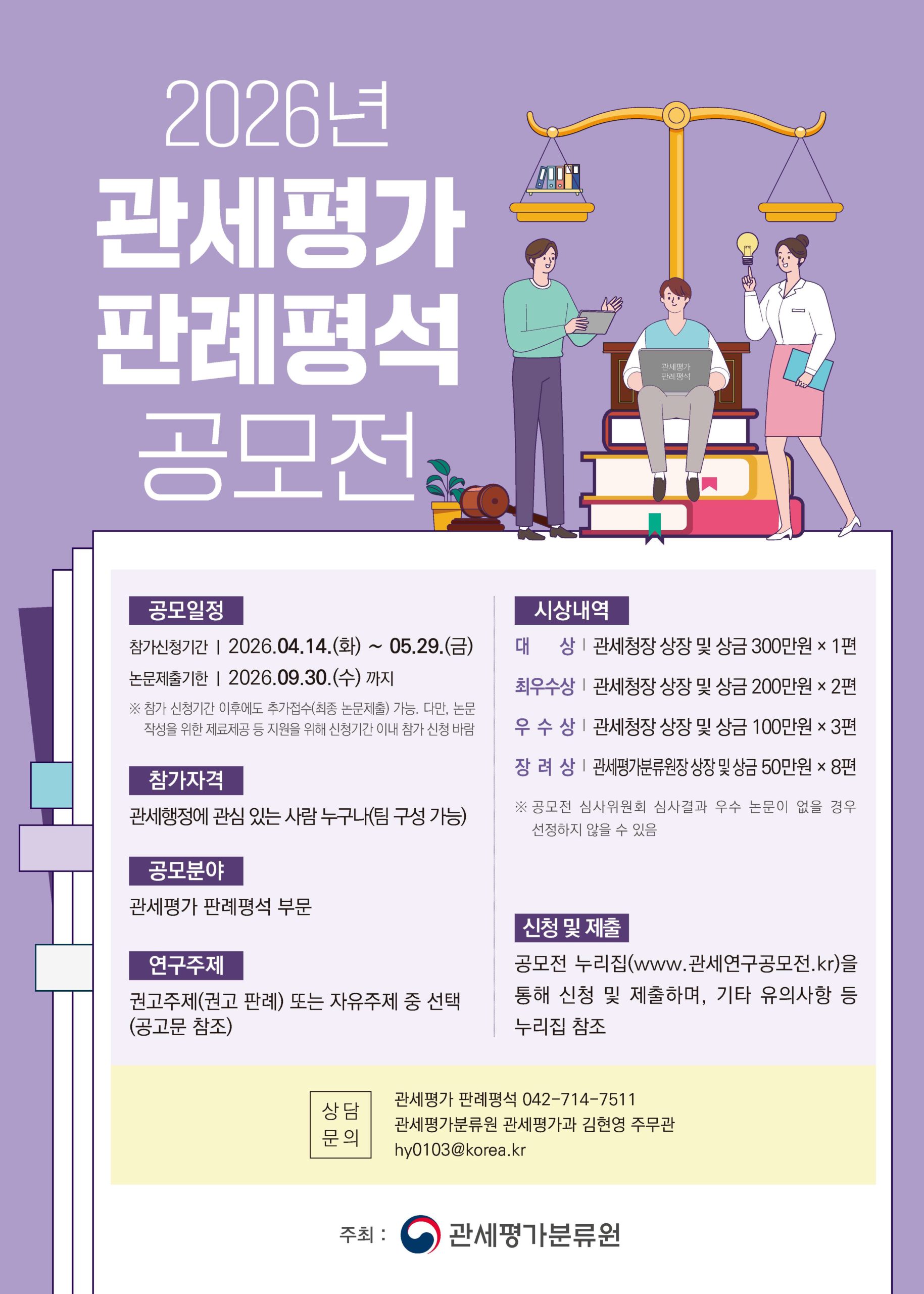 | 2026년도 「관세평가 및 품목분류 연구논문 공모전」 및 「관세평가 판례평석 공모전」 개최 안내 | |