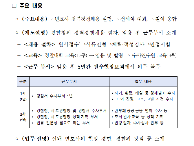 경찰청에서 로스쿨 변호사 경력경쟁채용 제도 설명회를 개최합니다.